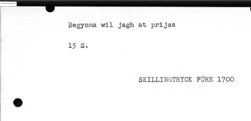 //// Begynna wil jagh a t prijsa //// * //// 15 S. //// SKILLINGTRYCK FÖRE 1700 //// - ^ . ////