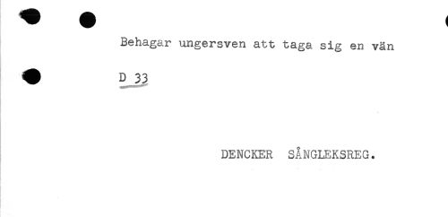 //// Behagar ungersven att taga sig en vän //// * //// DENCKER SÅNGLEKSREG. //// i . //// t ////