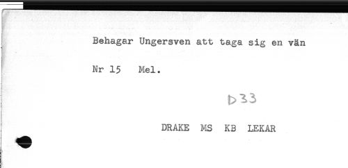 //// I . //// j Behagar Ungersven att taga sig en vän //// Nr 15 Mel. //// * //// ! //// DRAKE MS KB LEKAR ////