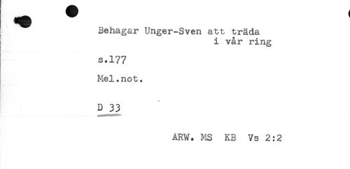 //// ^^ Behagar Unger-Sven att träda //// i vår ring //// S.177 //// Mel.not. //// D 33 //// ARW. MS KB Vs 2:2 ////