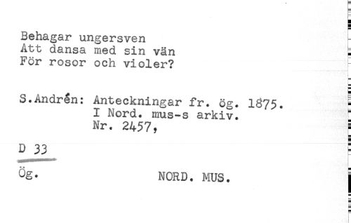 //// H //// H //// Behagar ungersven //// Att dansa med sin vän ^ //// För rosor och violer? - //// t //// < //// S.Andrån: Anteckningar fr. ög. 1375. ^ //// I Nord. mus-s arkiv. * F //// Nr. 2457, F //// D_33 ^ //// Ög- NORD. MUS. j //// i //// ! //// t //// t ////