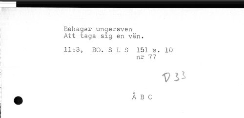 //// ! Behagar ungersven //// ! Att taga sig en vän. //// - 11:3, BO. S L S 151 s. 10 //// nr 77 //// i //// ^ A B O ////