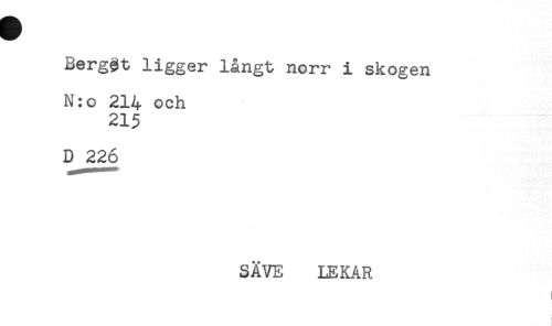//// Berggt ligger långt norr i skogen //// N:o 214 och //// 215 //// D^226 //// SÄVE LEKAR //// t ////