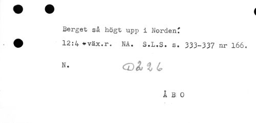 //// Berget så högt upp i Norden^ //// ^ 12:4<-väx.r. NA. S.L.S. s. 333-337 nr 166. //// N- t 4 //// ÅBO ////