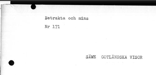 //// Betrakta och mins //// Nr 171 //// 1 //// ! SÄWE GOTLANDSKA VISOR ////