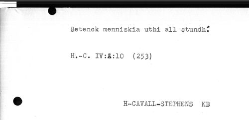 //// Betenck menniskia uthi all stundhf //// H.-C. IV:^:10 (253) //// P //// ' //// * //// # H-CAVALL-STEPHENS KB //// * ////