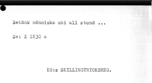 //// Betänk människa uti all stund ... ! //// * //// i //// Se: Z 1630 a //// KB:s SKILLINGTRYCKSREG. ////