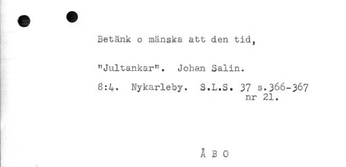 //// Betänk o mänska att den tid, //// "Jultankar". Johan Salin. //// 8:4. Nykarleby. S.L.S. 37 s.366-367 //// nr 21. //// t. ////