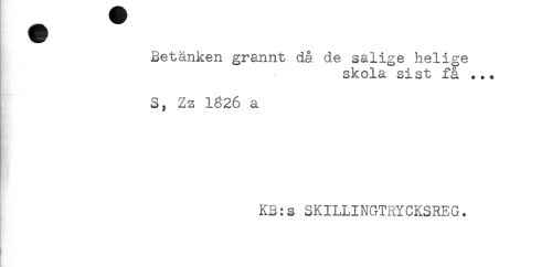//// Betånken grannt då de salige helige //// skola sist få ... //// S, Zz 1626 a //// KB:s SKILLINGTRYCKSREG. ////