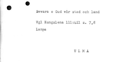 //// Bevara o Gud vår stad och land //// Vgl Kungslena 111:421 s. //// Lampa //// U L M A ////