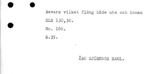 //// Bevars vilket fläng både ute och innan //// SLS 130,30. //// ^ No. 166. //// S.35. //// . //// ÅBO SJÖBERGS SAML. //// ' ////