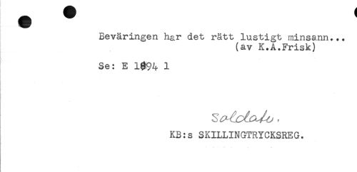 //// Beväringen har det rätt lustigt minsann... //// (av K.A.Frisk) //// Se: E 1994 1 //// t //// KB:s SKILLINGTRYCKSREG. ////