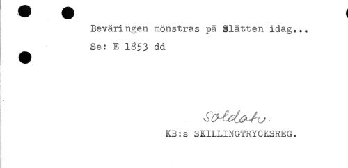 //// Beväringen mönstras pä Slätten idag... //// Se: E 1653 dd //// i //// ! //// KB:s SKILLINGTRYCKSREG. ////