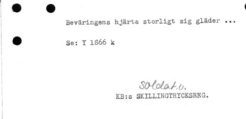 //// ! //// i //// Beväringens hjärta storligt sig gläder ... //// < //// # Se: Y 1666 k //// t //// I //// KB:s SKILLINGTRYCKSREG. ////