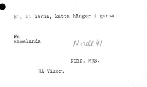 //// Bi, bi barna, katta hänger i garna //// Bs //// Rämelanda ^^ 4 //// /NORD. MUS. //// HA Visor. ////