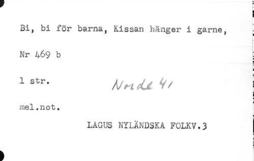//// L= //// Bi, bi för barna, Kissan hänger i garne, [ //// ! //// t //// Nr 469 b [ //// a //// 5 //// a //// c //// mel.not. //// LAGUS NYLÄNDSKA F0LKV.3 //// h //// t ////