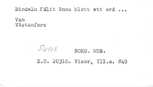 //// Rinaejjri i ännu Dio*o*u ora ... //// Vsm //// Västanfors //// 31/NORD. MUS. //// E.U. 20310. Visor, III.s. ^49 ////