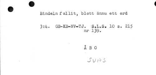 //// Bindeln fallit, blott ännu ett ord //// 3:4. GB-KB-NV-TJ. S.L.S. 10 s. 215 //// nr 139. //// t //// ÅBO ////