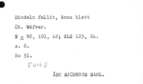 //// Bindeln fallit, ännu blott //// Öb. Wäfvar. //// 3 - R6, 191, SLS 125, 24. //// s. 6. //// No 51. //// ÅBO SJÖBERGS SAML. ////