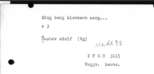 //// Bing bang klockarn sang... //// s 3 //// Sustav Adolf (Vg) //// I F G H 3115 //// * Vaggv. bamv. ////