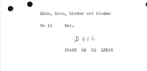 //// Binn, binn, bindor uti bindan //// Nr 16 Mel. //// DRAKE MS KB LEKAR ////