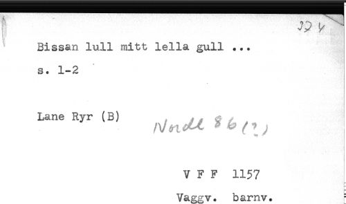 //// Bissan lull mitt lella gull ... //// s. 1-2 //// Lane Ryr (B) , # ^ # //// - //// V F F 1157 //// Vaggv. barnv. ^ ////