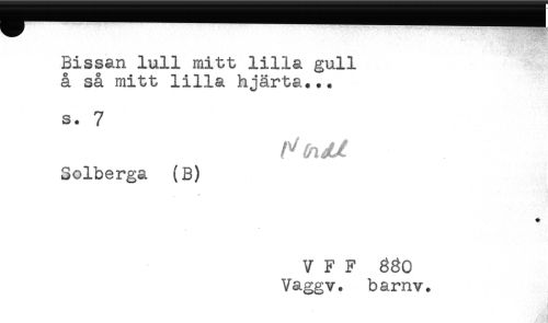 //// Bissan lull mitt lilla gull //// å så mitt lilla hjärta... //// s. 7 //// Solberga (B) //// V F F 880 //// Vaggv. b arnv. ////