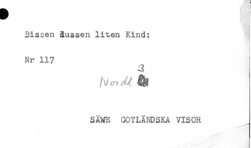 //// Bissen (Russen liten Kind: //// Nr 117 //// J //// SÄWE GOTLÄNDSKA VISOR //// . . f ////