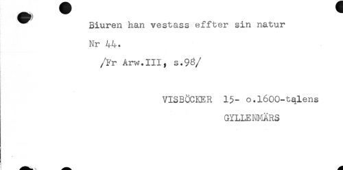 //// Siuren han vestass effter sin natur //// Nr 44. //// /Fr Arw.III, s.93 //// /. //// VISBÖCKER 15- o.léOO-tqlens //// GYLLEI#iÄRS //// < . ^ ! ////