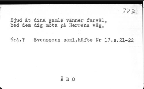 //// Bjud åt dina gamla vänner farväl, //// bed dem dig möta på Herrens väg, //// 6:4.? Svenssons saml.häfte Nr 17*s.21-22 //// H) ////