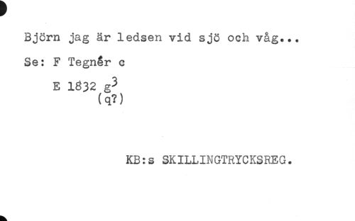 //// Björn jag är ledsen vid sjö och våg... //// Se: F Tegnér c //// E 1332 g3 //// (q?) //// KB:s SKILLINGTRYCKSREG. ////