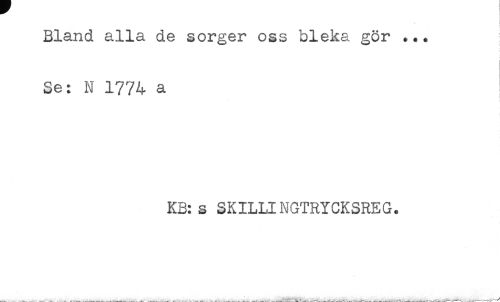 //// Bland alla de sorger oss bleka gör ... //// Se: N 1774 a //// KB: s SKILLINGTRYCKSREG. ////