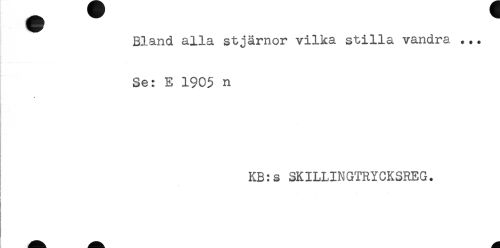 //// Bland alla stjärnor vilka stilla vandra ... //// - //// Se: E 1905 n //// KB:s SKILLINGTRYCKSREG. //// - //// i //// T ////