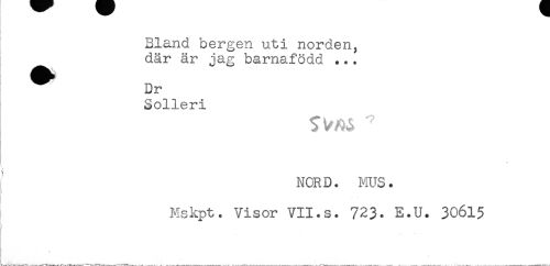//// Bland bergen uti norden, //// där är jag barnafödd ... //// Dr //// Solleri //// t //// NCR D. MUS. //// Mskpt. Visor VII.s. 723. E.U. 30615 //// ^ _ ^ ___ ////
