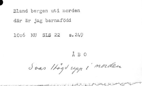 //// Bland bergen uti norden //// där är jag barnafödd //// 10:6 MU SLS 22 s.249 //// ÅBO //// - * ****'' ////