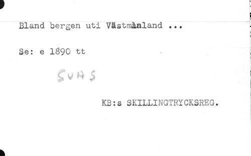 //// Bland bergen uti Västmåaland ... //// i- //// F //// Se: e 1390 tt //// ! //// KB:s SKILLINGTRYCKSREG. //// t //// * ////
