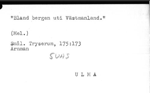 //// "Bland bergen uti Västmanland." //// * //// * //// (Mel.) //// Srnål. Tryserum, 173:173 //// Amman //// U L M A //// ! //// t //// ; //// J ////