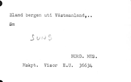 //// Bland bergen uti Västmanland,.. //// Sm //// NORD. MUS. //// Mskpt. Visor E.U. 36634 ////