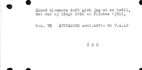 //// Bland blommors doft gick jag ut en kväll, //// det var ej långt från en flickas tjäll, //// 6:4. TE SVENSSONS saml.häfte Nr 7.S.42 //// ÅBO ////