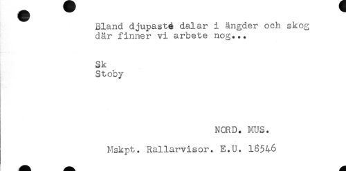 //// Bland djupasté dalar i ängder och skog //// där finner vi arbete nog... //// Sk //// Stoby //// NORD. MUS. //// Mskpt. Rallarvisor. E.U. 16546 ////