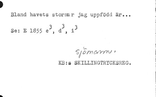 //// Bland havets stormr jag uppfödd är... i //// B //// Se: E 1855 c^, d^, //// }- //// - //// t //// c //// t //// KB:s SKILLINGTRYCKSREG. //// ) //// i //// t //// s ////