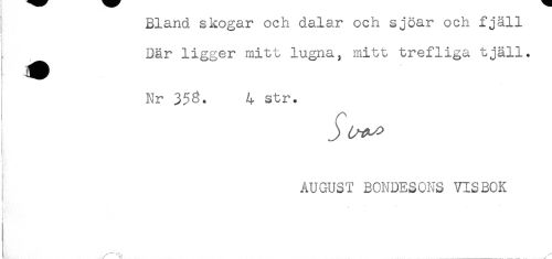 //// Där ligger mitt lugna, mitt trefliga tjäll. //// ' //// Nr 358. 4 str. //// AUGUST BONDESONS VISBOK //// ^...... ^ ..... .. ////