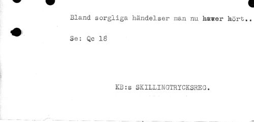 //// Bland sorgliga händelser man nu haaer hört.. //// \ //// Se: Qc 16 //// KB:s SKILLINGTRYCKSREG. ////