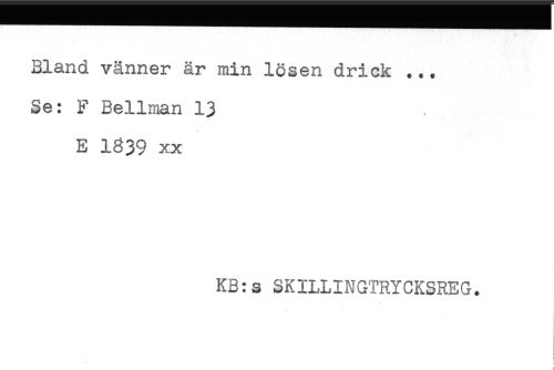//// Bland vänner är min lösen drick ... //// Se: F Bellman 13 //// E 1339 xx //// KB:s SKILLINGTRYCKSREG. //// t ////