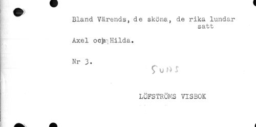 //// Bland Vårends, de sköna, de rika lundar //// satt //// Axel oc^aqHilda. //// Nr 3. //// } ' f U ^ I' //// LÖFSTRÖMS VISBOK //// * * ////