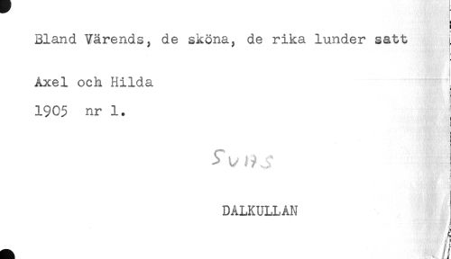 //// Bland Värends, de sköna, de rika lunder satt //// Axel och Hilda //// 1905 nr 1. ) //// t //// < //// i //// 1 //// DALKULLAN ////