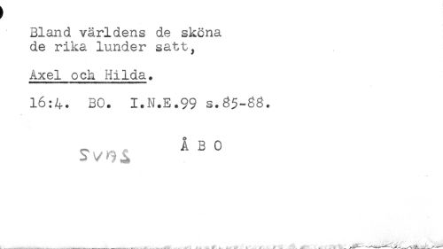 //// Bland världens de sköna //// de rika lunder satt, //// Axel och Hilda. //// 16:4. BO. I.N.E.99 s.35-68. //// * ////