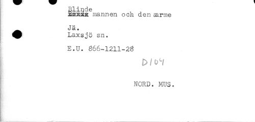 //// Emma mannen och den sarme //// Jä. //// Laxsjö sn. //// E.U. 366-1211-26 //// I //// * //// NORD. MUS. //// _^_____ ____ _____ ____ ////