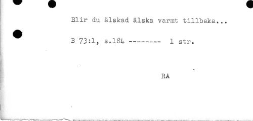 //// Blir du älskad älska varmt, tillbaka... //// B 73:1, s.184 —----- 1 str. //// ** //// ] RÅ ////