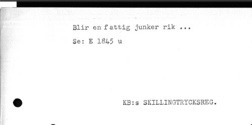 //// ....... ... . ----- , . - . - ^ -....... //// Blir en fattig junker rik ... //// Se: E 1845 u //// - //// * //// ^ KB:s SKILLINGTRYCKSREG. ////